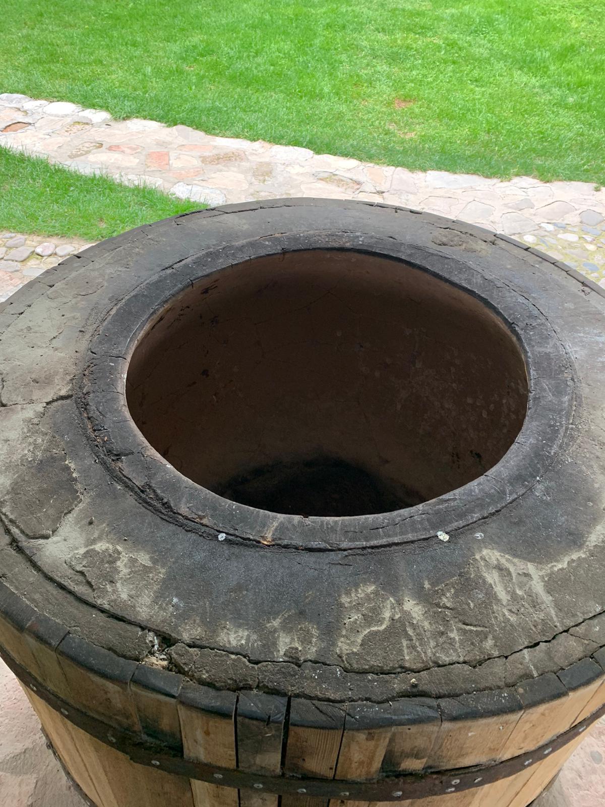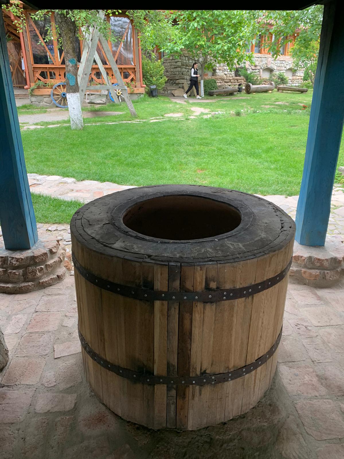 A tone in a friend's backyard in Tbilisi. Having one of these outdoor ovens is quite a common site at homes. But because of the time & all involved in firing it up, usually 15-20 loaves are baked at once.