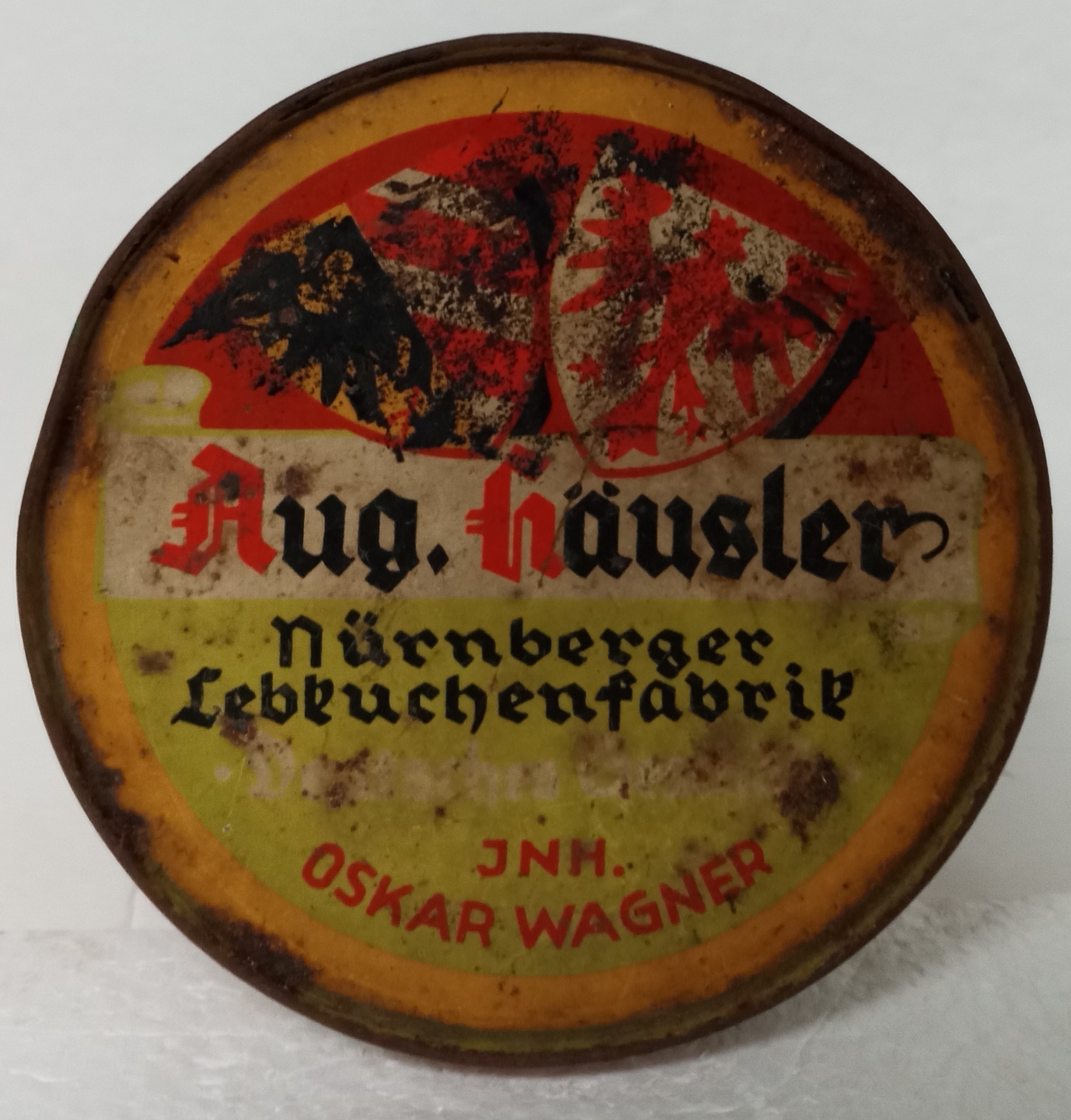 This tin has both Aug. Hausler's & Oskar Wagner's names on it, along with the initials, JNH. I don't know the connection, but the next tin is a third name in the mix!!! I don't know the history among them.