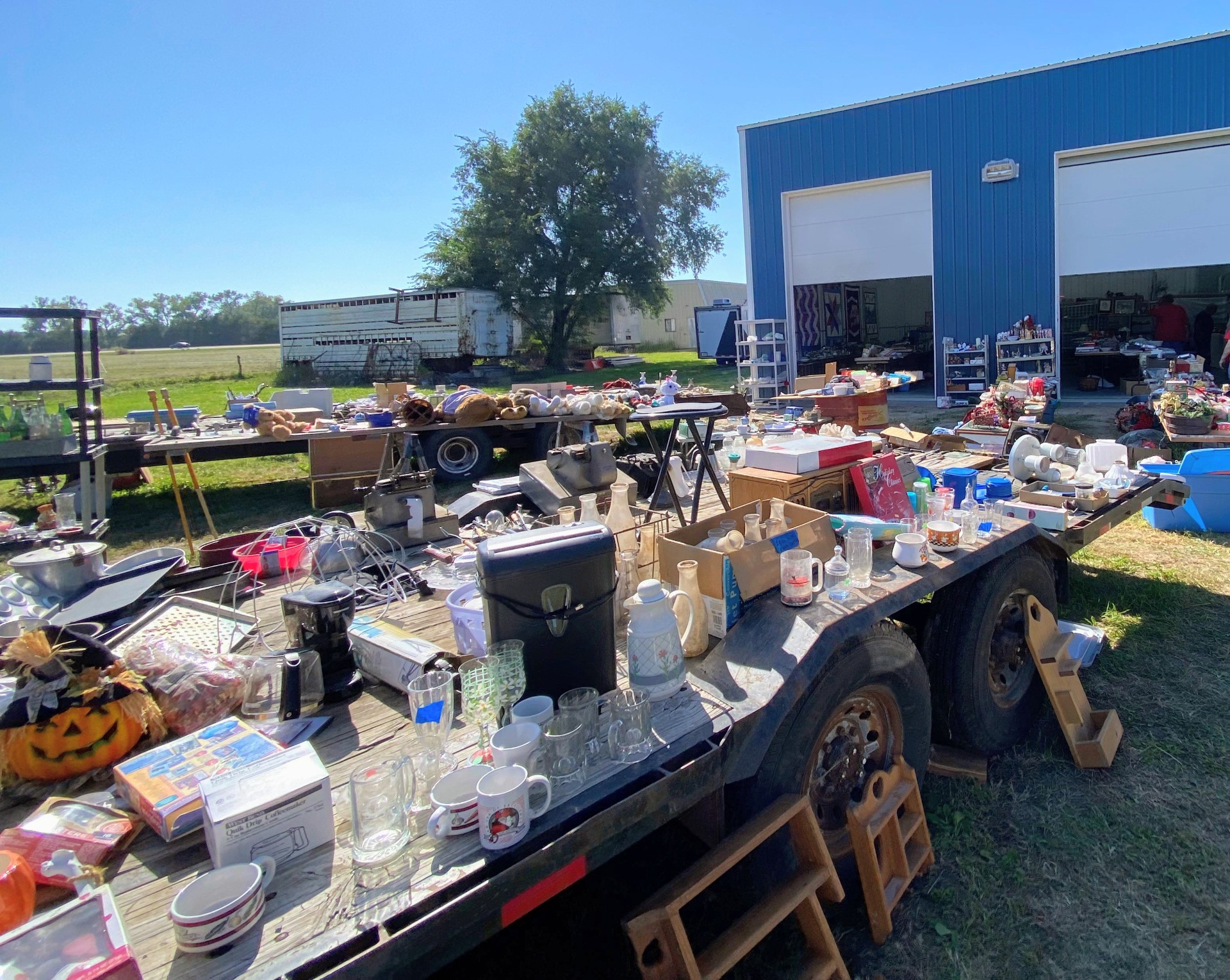 For some years already, on the last weekend in September, there is a published "loop Junk Jaunt route" in central Nebraska of 1) "garage sale-type stops" at homes along the route in the country & in towns, 2) at local antique-related businesses, and 3) at "flea market"-type gatherings at rodeo or fair grounds or another large space in a town.