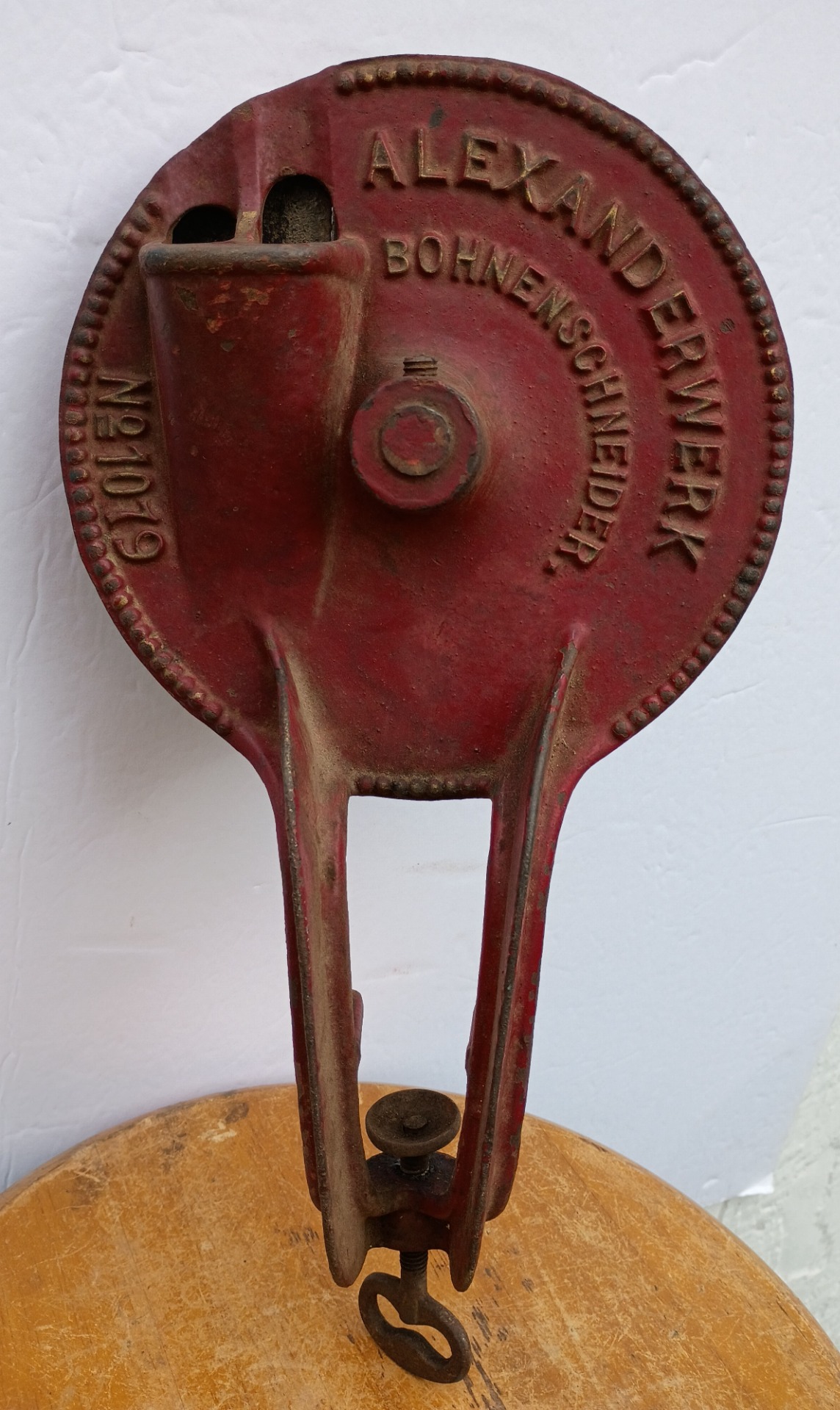 In German, Bohnenschneider is translated as bean cutter, but the outcome is what's known to Americans as sliced French-style string beans - slicing 2 beans at a time. Some reference books call this & similar cast iron or other various metal styles, a bean slicer. (Click to enlarge.)